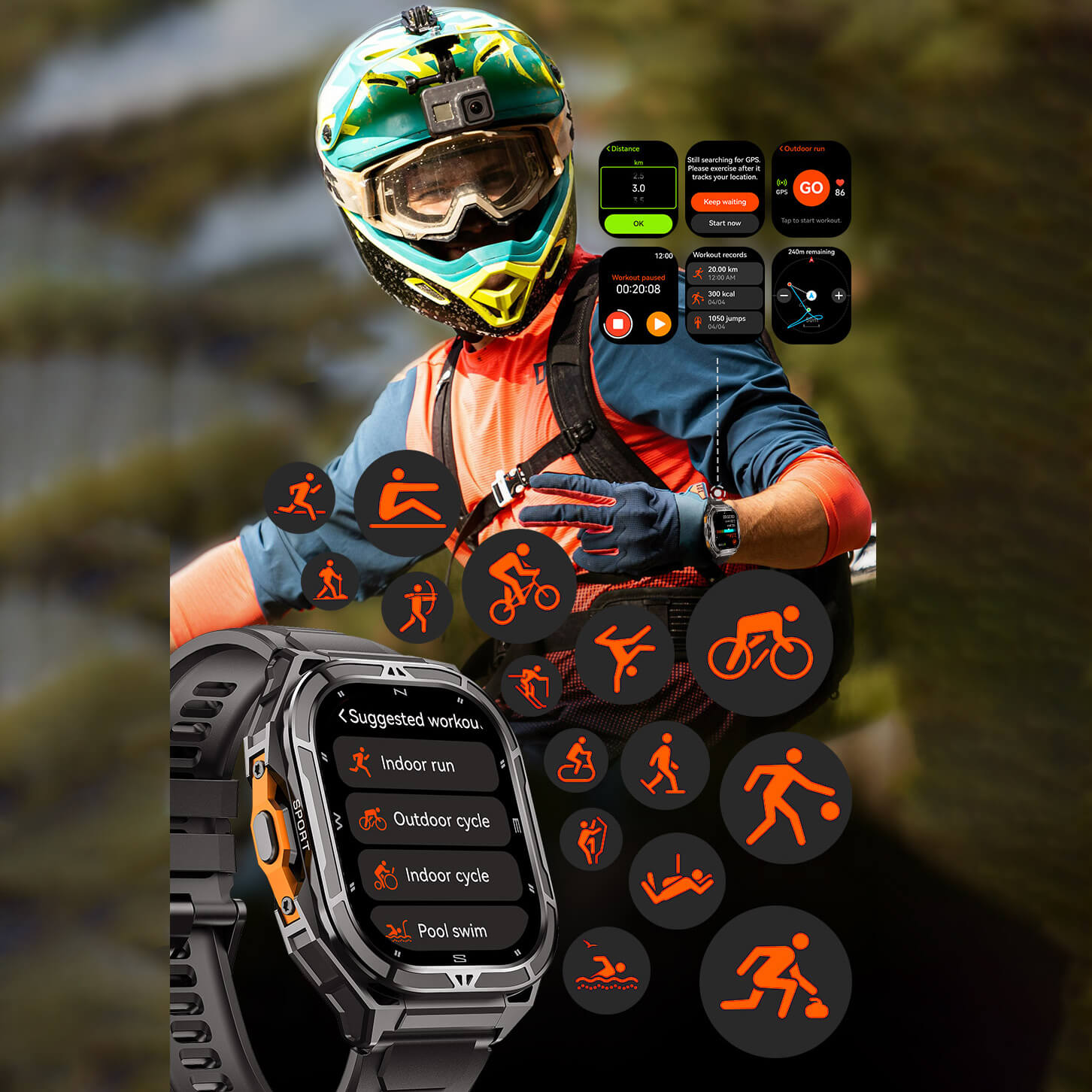 Gefertigt aus Zinklegierung und Corning Gorilla Glass 3. Wasser- und staubdicht nach 5 ATM + IP69K. Die feuerfeste Rückseite und stoßfeste Bauweise machen sie extrem widerstandsfähig – auch bei Schnee, Schlamm oder Unterwasser.